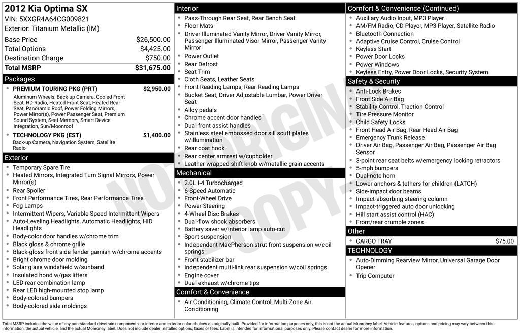 - Vehicle Name: Kia Optima