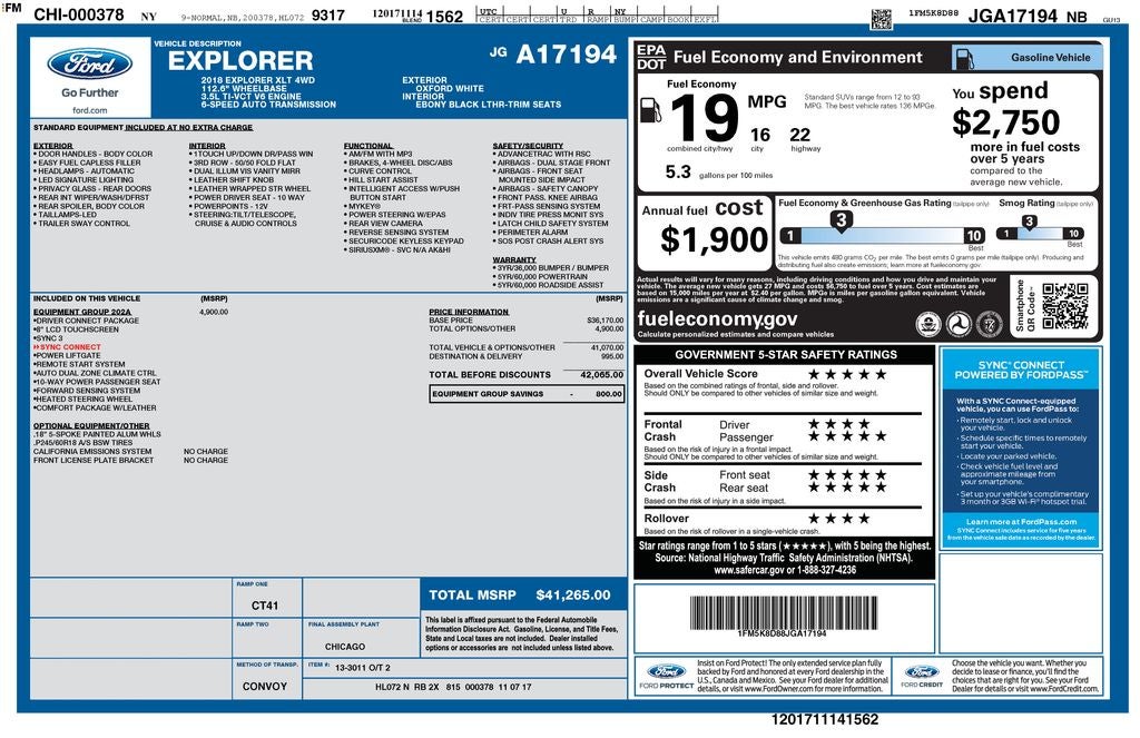 - Fuel Economy Est-Combined (MPG): 18