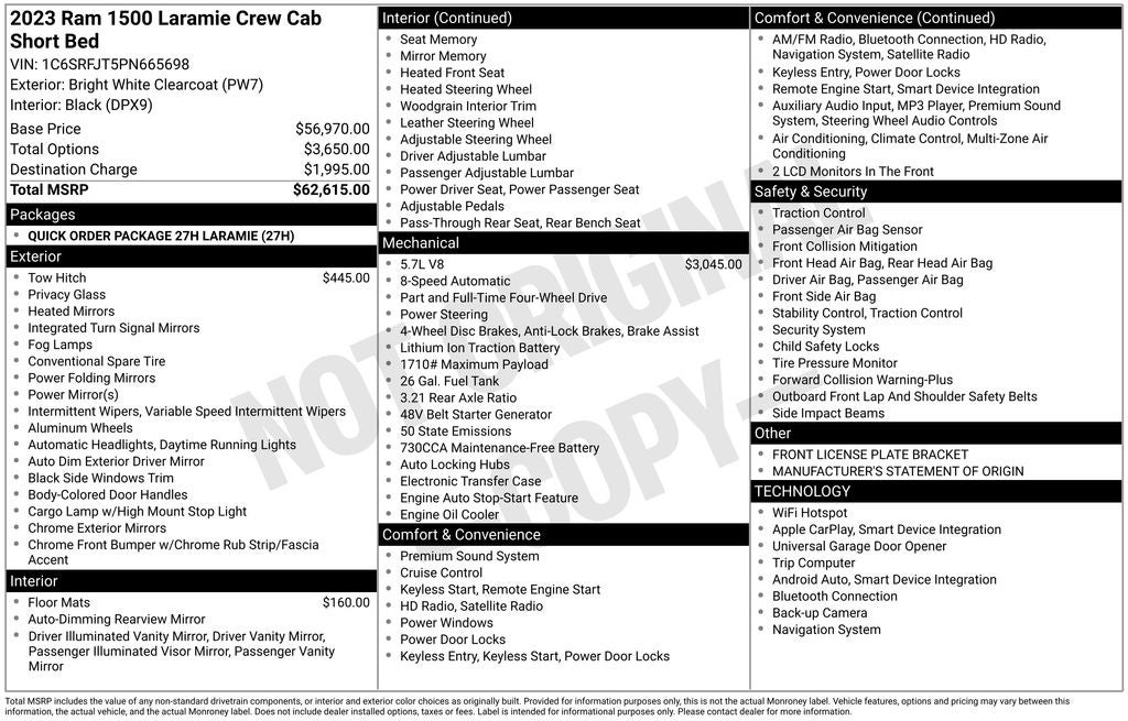 - Vehicle Name: Ram 1500