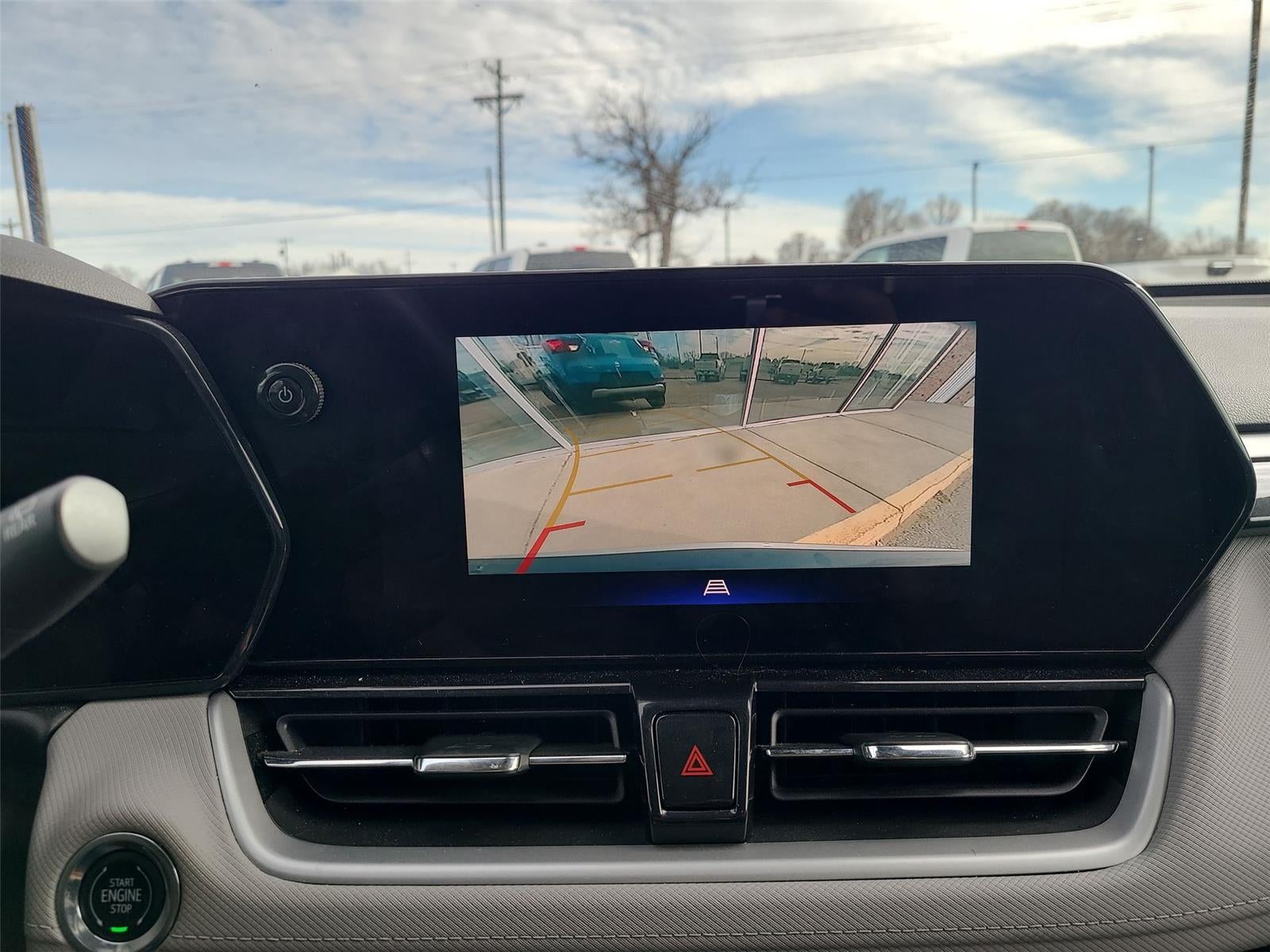 - The vehicle is equipped with a camera that displays an image of the area behind the vehicle on an interior display.